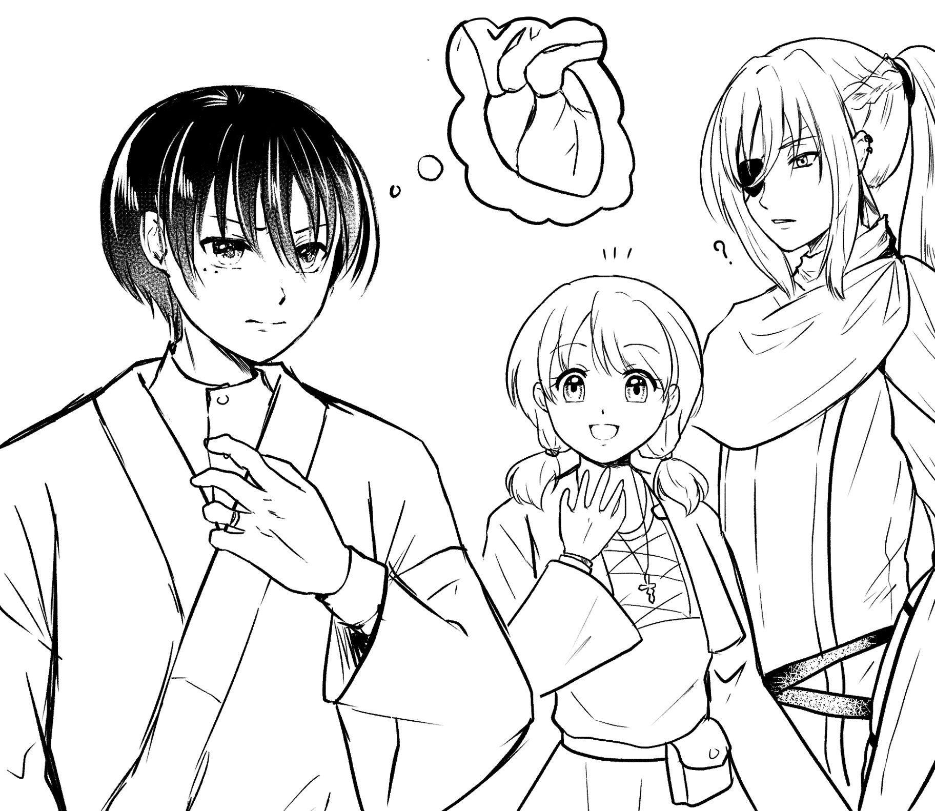 えいあなの方のイラストを2枚追加しました。いちまいめはこれ。もう一枚は、かなり重大なネタバレを含みますので、イラストページの一番最後に追加しています。本編を最新更新分まで読んでくださっている方は、ぜひ見てください。